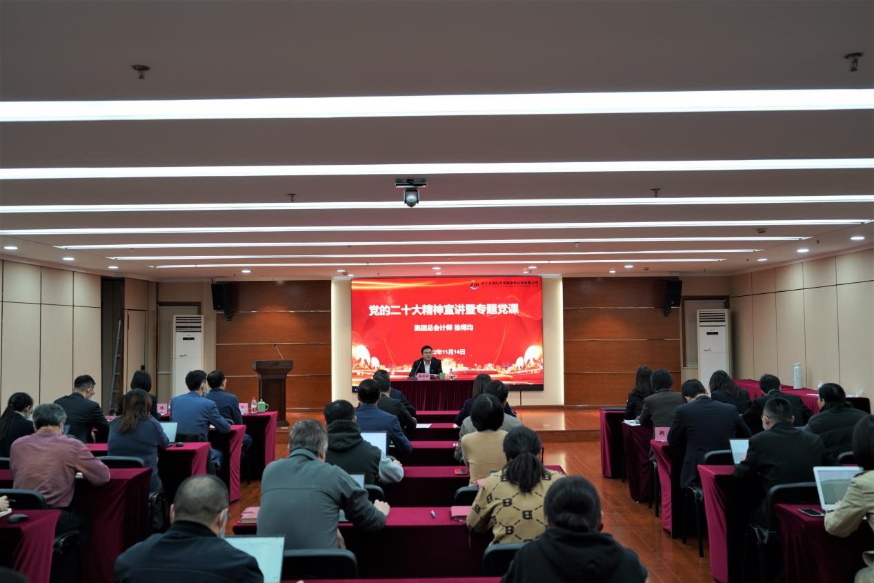11月14日下午,省國貿集團徐得均總會計師赴國際供應鏈公司宣講黨的二十大精神,并巡聽旁聽公司黨總支理論學習中心組專題學習會。總部第六黨支部全體黨員、公司本級及下屬企…